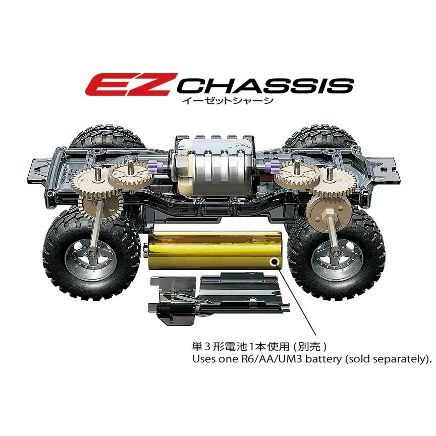 Equipped with EZ, a new chassis equipped with a double shaft motor that can be easily assembled without using screws.