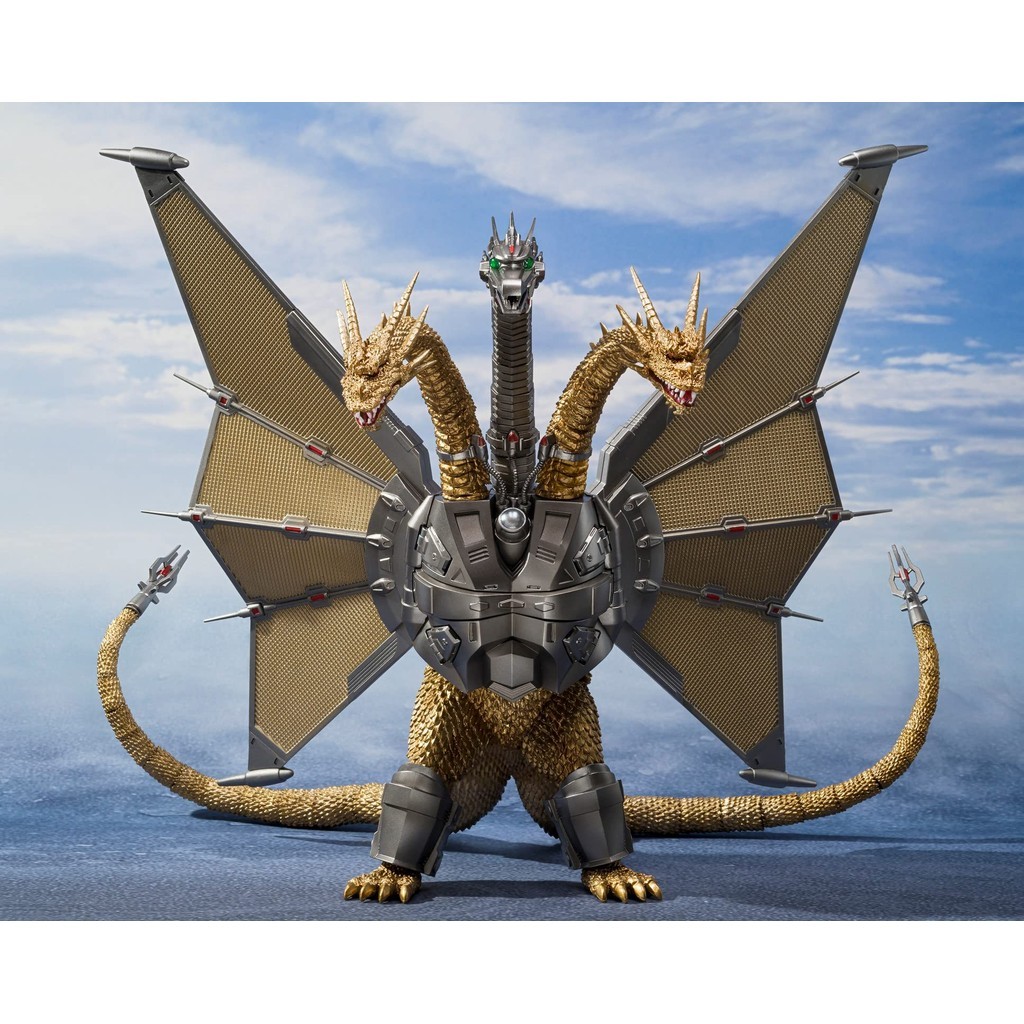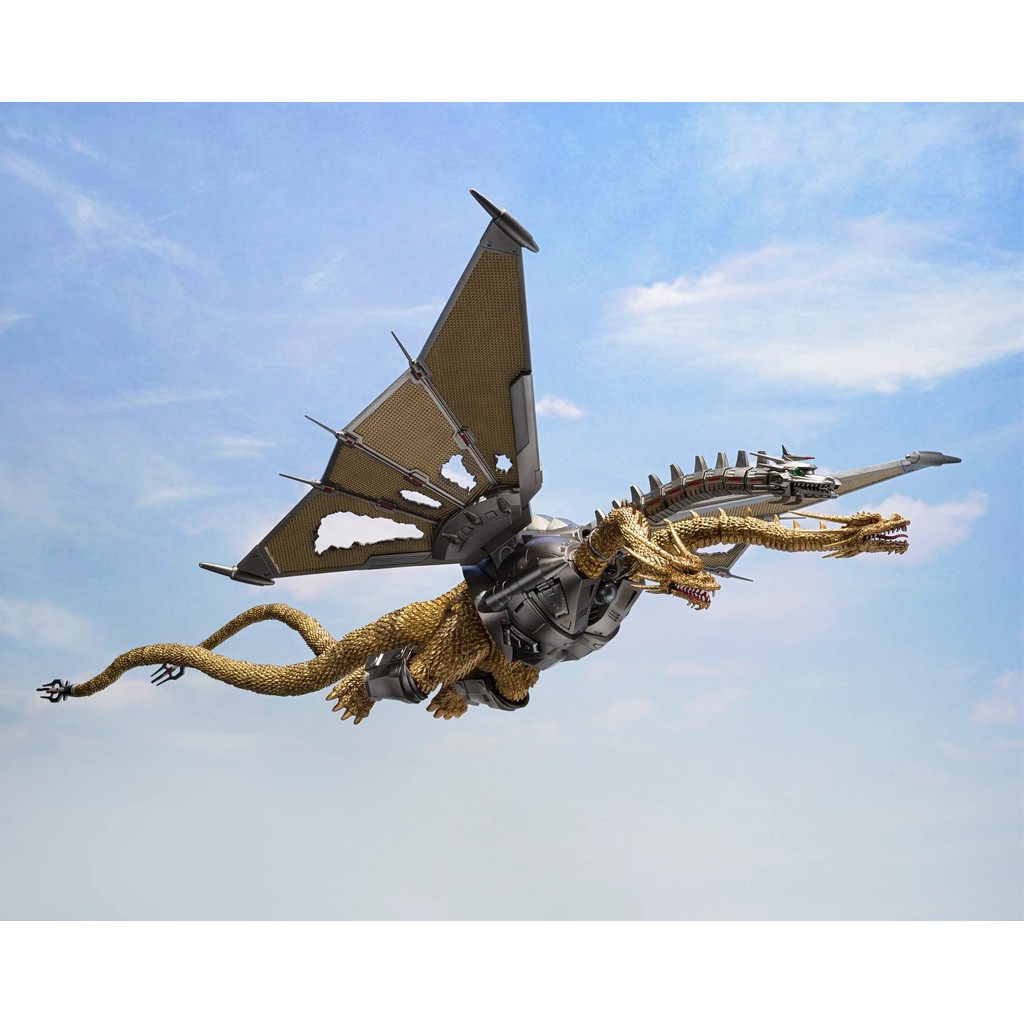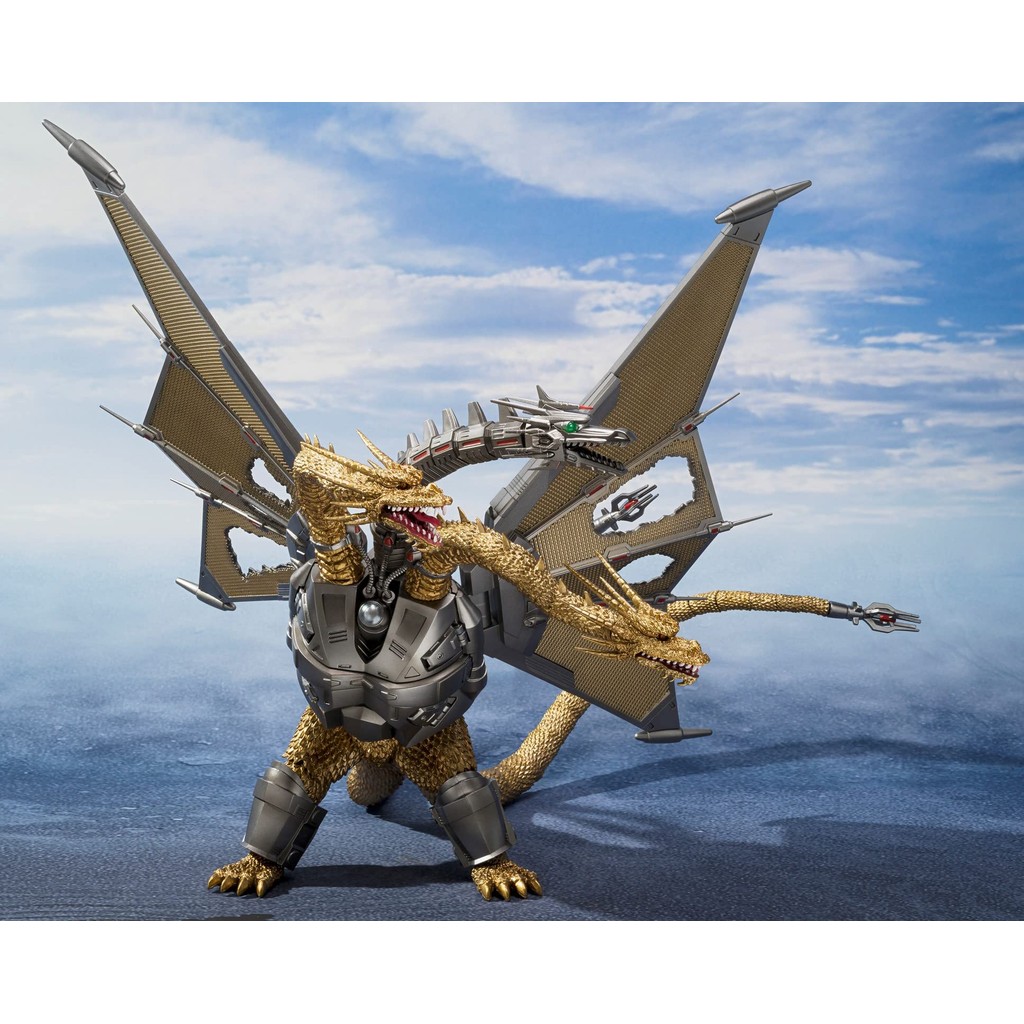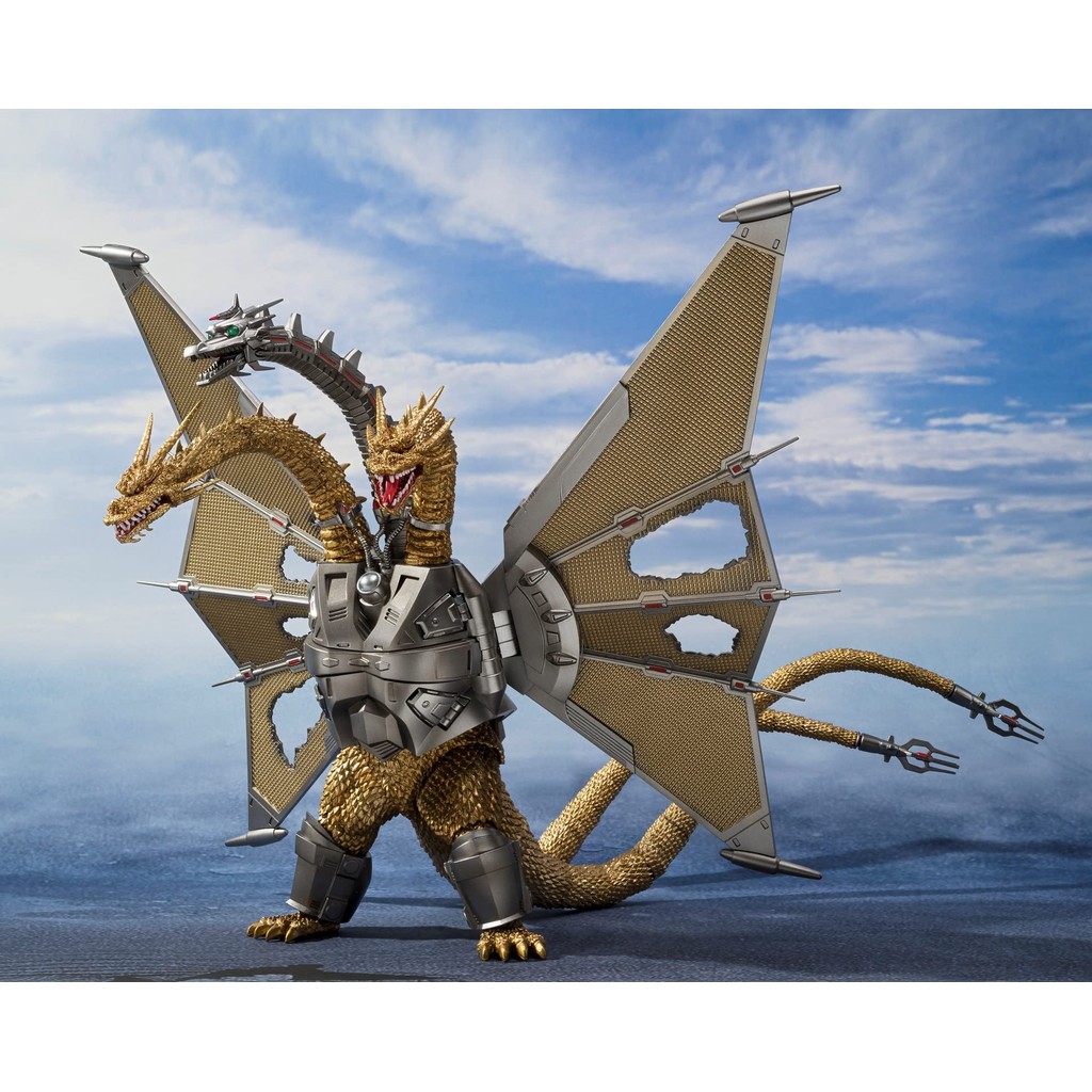 Mecha Ghidorah rejoins S;H;MonsterArts in the Shinjuku Battle Special Set! All three heads and two tails are articulated, allowing for flexible poses.