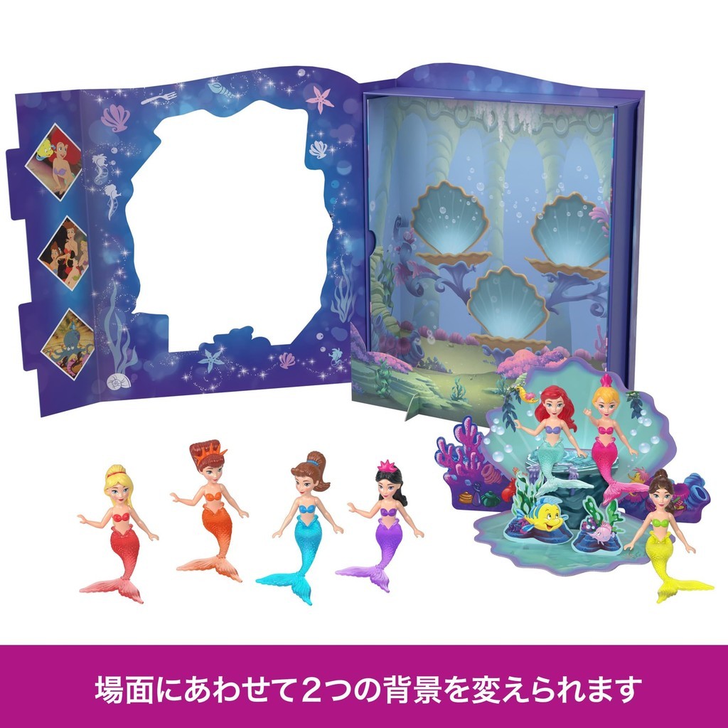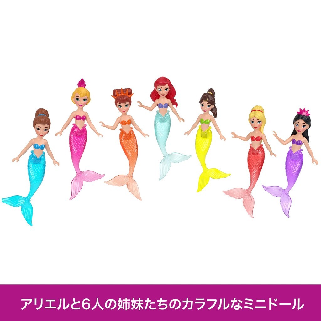 [Contents] Ariel and her sisters from the Disney movie "The Little Mermaid" have been turned into adorable mini-dolls and made into a storybook set. It comes with a mermaid-style Ariel and her six sisters, and a seashell sofa that you can assemble and play with, allowing you to have fun recreating the ocean where Ariel lives. Disney