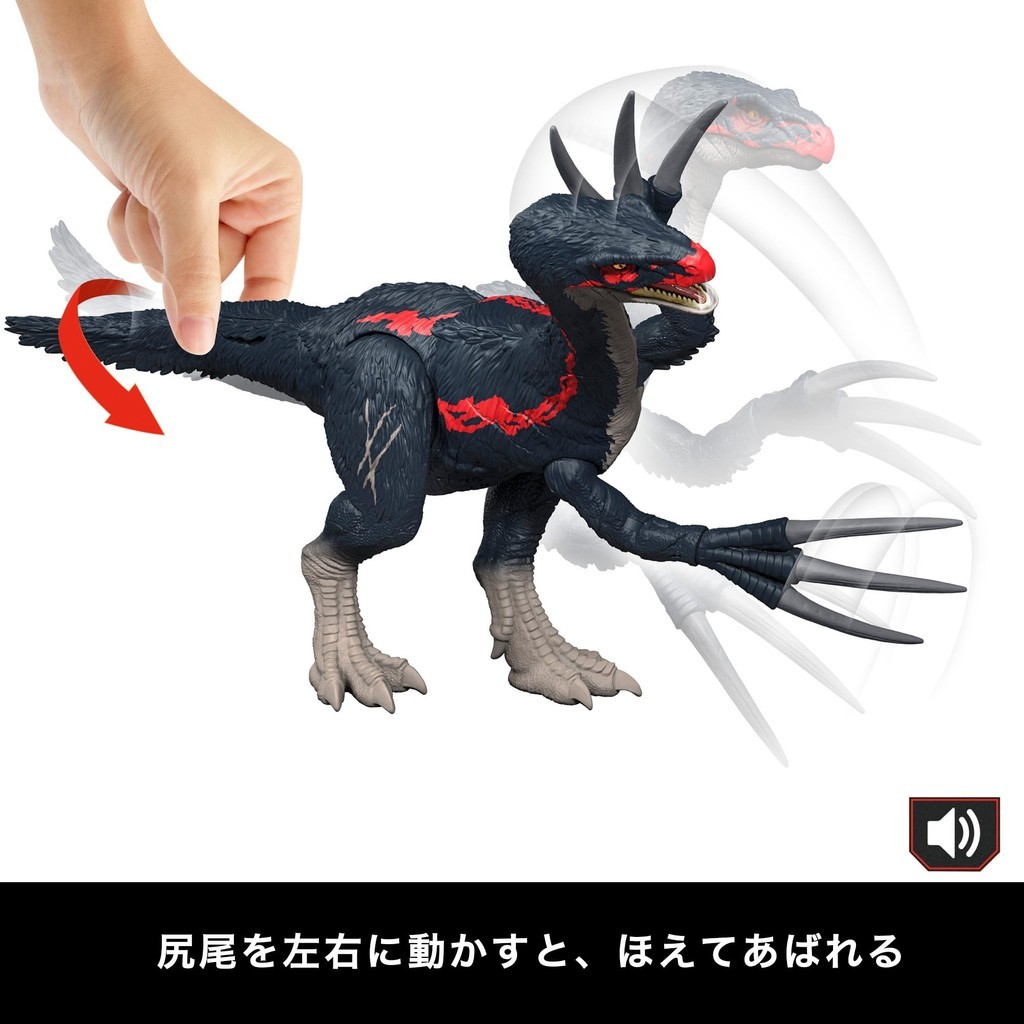 [Contents] An impressive figure of a Therizinosaurus that can roar and slash with its large claws by moving its tail left and right. Let's play with the carnivorous dinosaur Therizinosaurus that appears in Jurassic World Survival Mission! Universal City Studios LLC and Amblin Entertainment, Inc. All Rights Reserved.