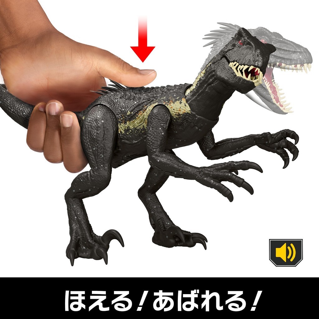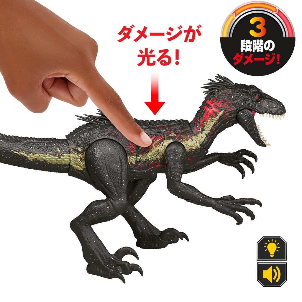 [Contents] A realistic figure of an impressive, ferocious and aggressive Indoraptor that glows and roars when you press the buttons on its body. It can deal 3 levels of damage and barks with different voices. A ferocious action that shakes its head and bites when you press the button! This is an iconic dinosaur that appears in "Jurassic World: Fallen Kingdom." Compatible with the free app "Jurassic World Play" that works with figures. Universal City Studios LLC and Amblin Entertainment, Inc. All Rights Reserved.