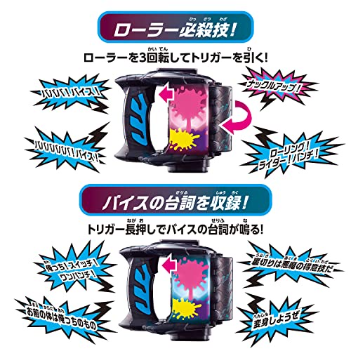 Rotate the roller of the rolling by stamp! When you press the stamp on the stamp pad of the DX Revise Driver (sold separately), the transformation standby sound is activated! When you set it on your belt and knock down the Rolling Vice Stamp, the stamp stand will rotate and the LED light and transformation sound will be activated, allowing you to enjoy Kamen Rider Levi and Vice's power-up transformation play.